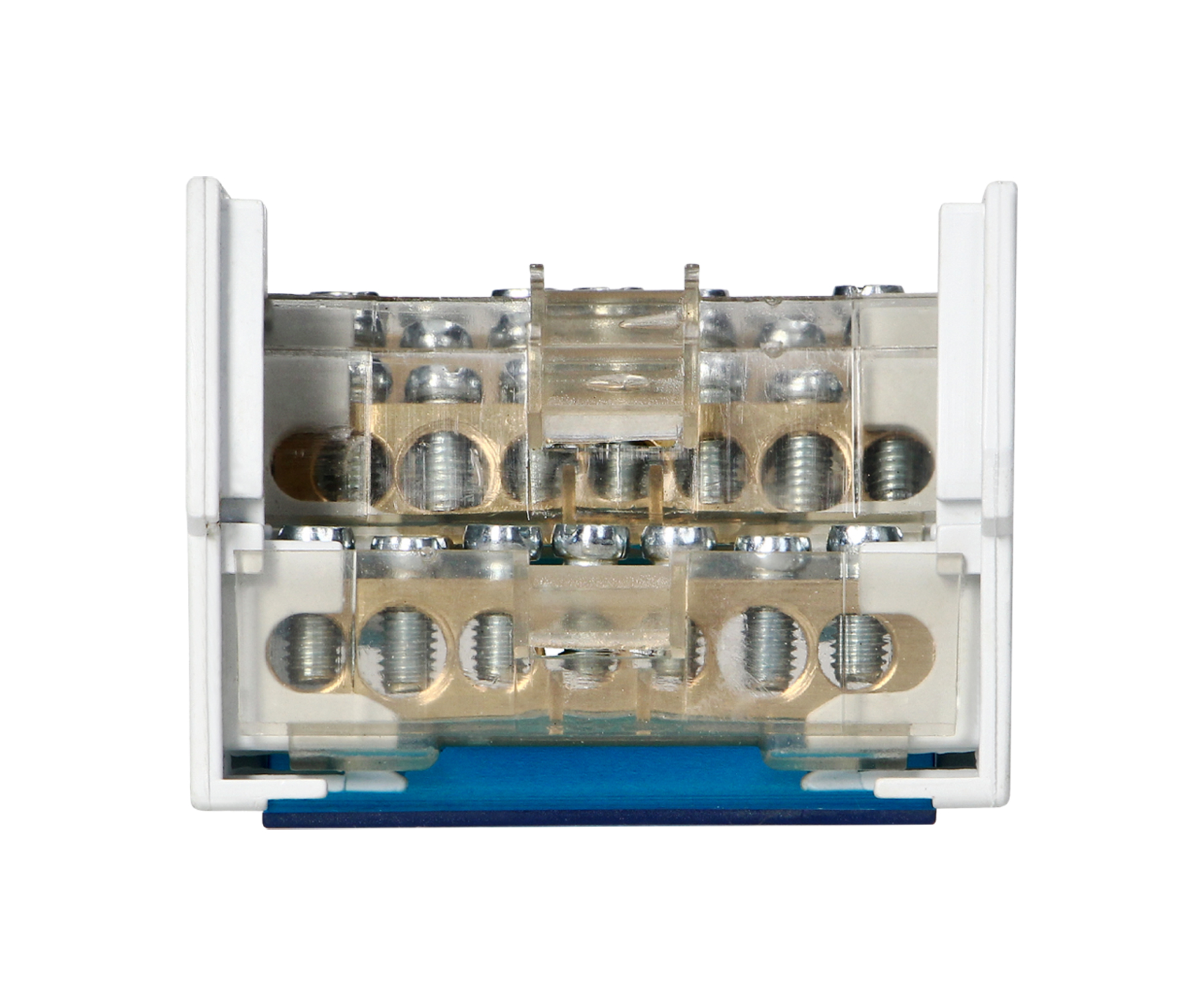 Connector type: 4 x terminals ; Nominal voltage: 500 V ; Housing: Plastic ; Color: White + Blue ;
