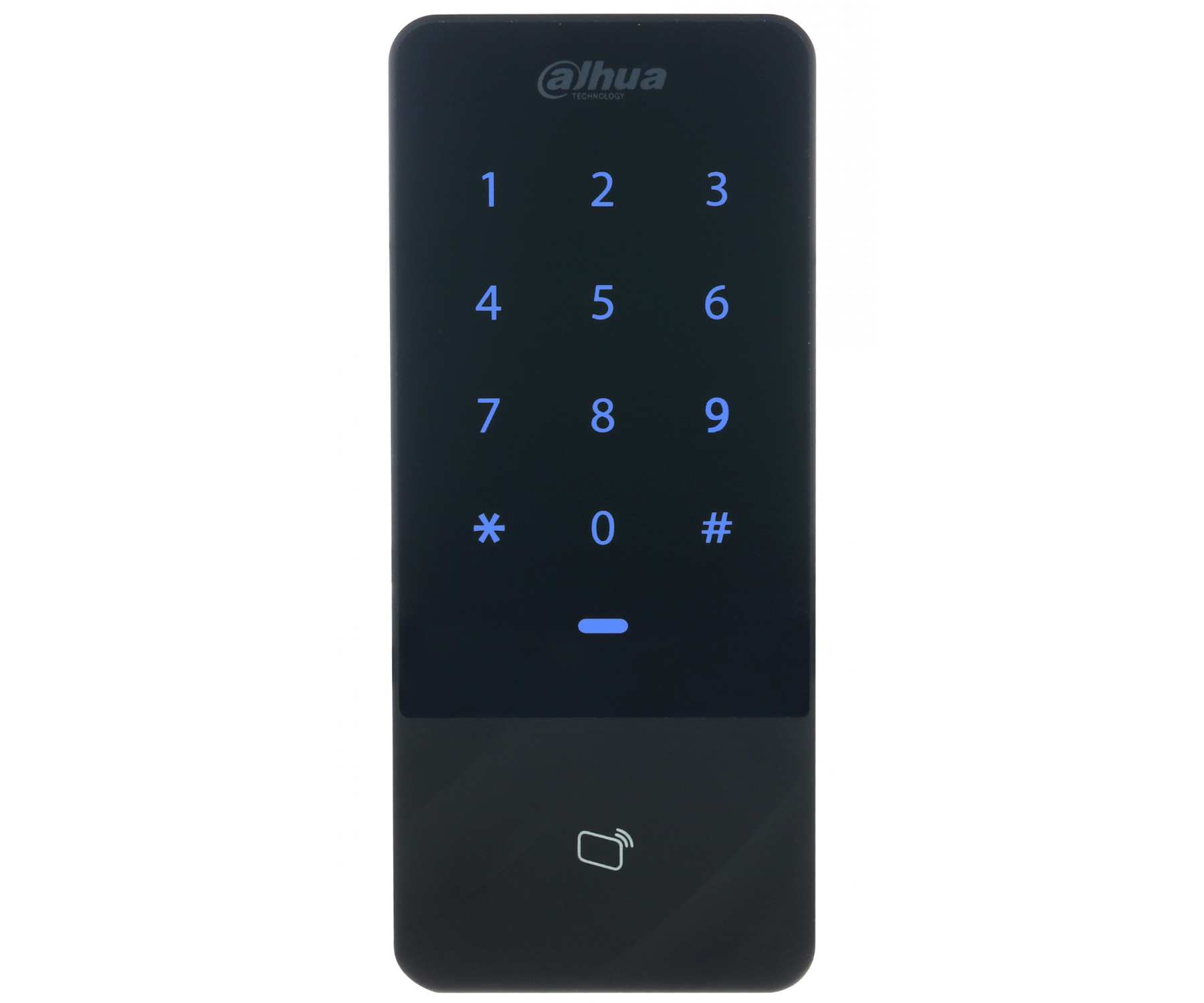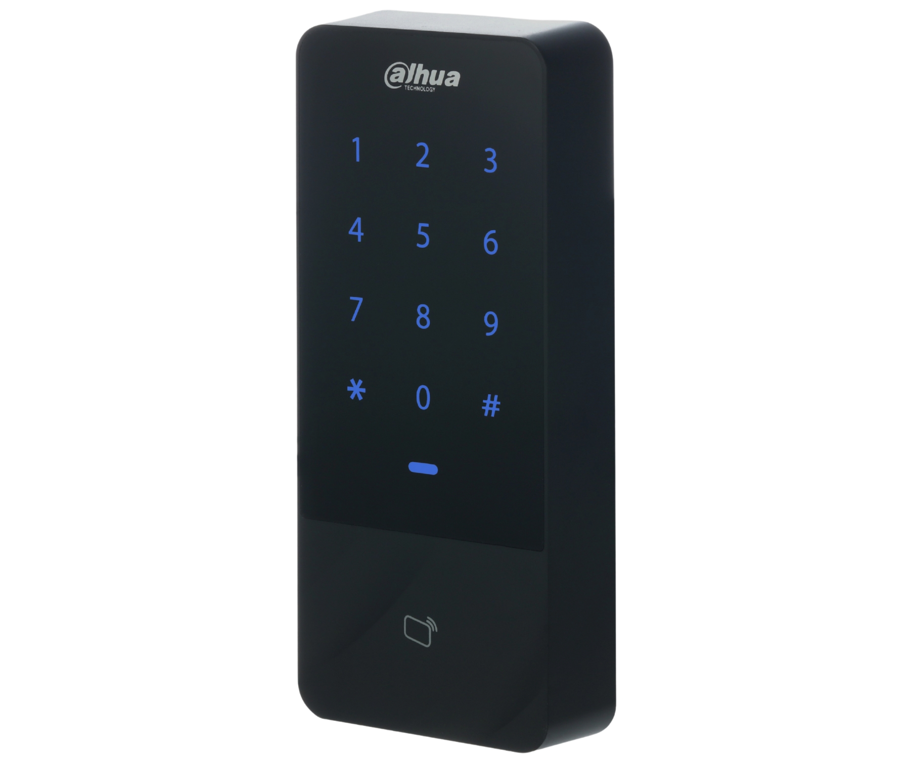 Cards support: 13.56 MHz S50 ; Reading distance of prox-keys: max. 6 cm ; Autonomous operation; Keyboard built-in; Main features: 30000 indexed users, Blue backlight of the keys, 128 access groups ; Housing: Plastic (PC) ;
